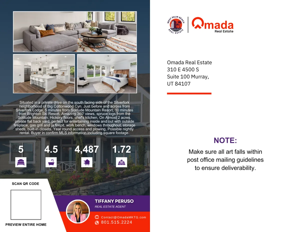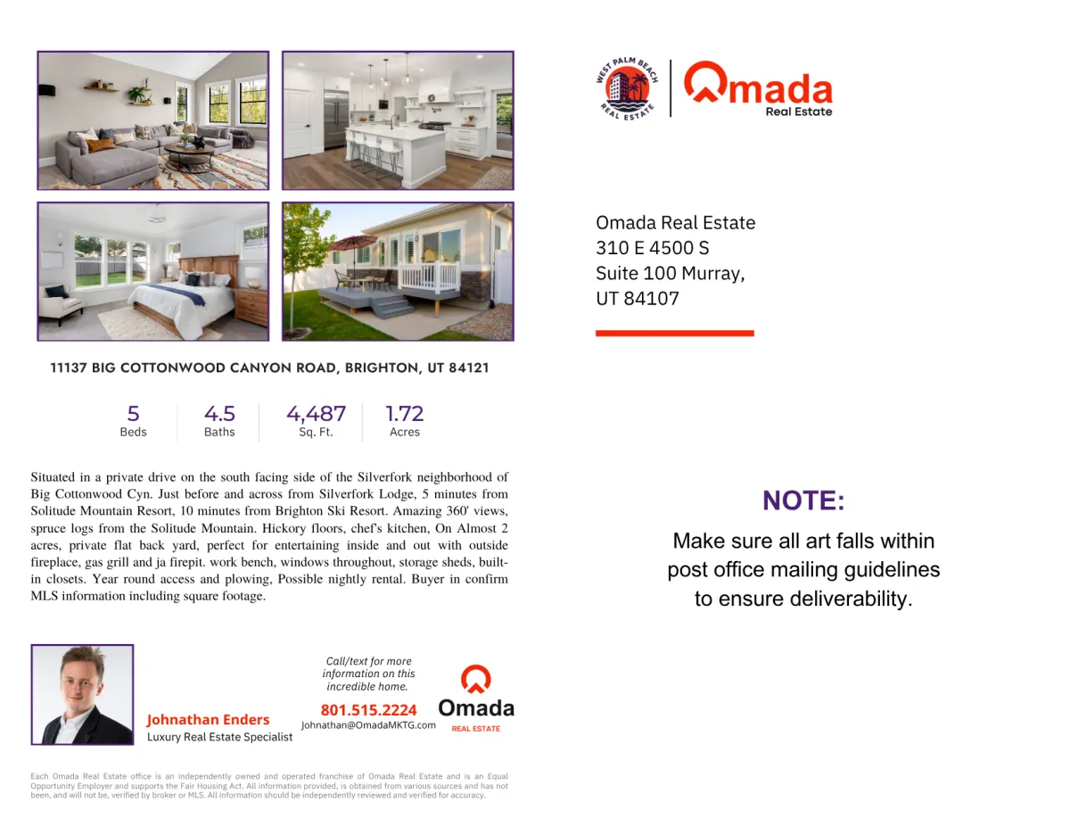 Customizable Designs – Tailor postcards with your branding, headshot, and property details.