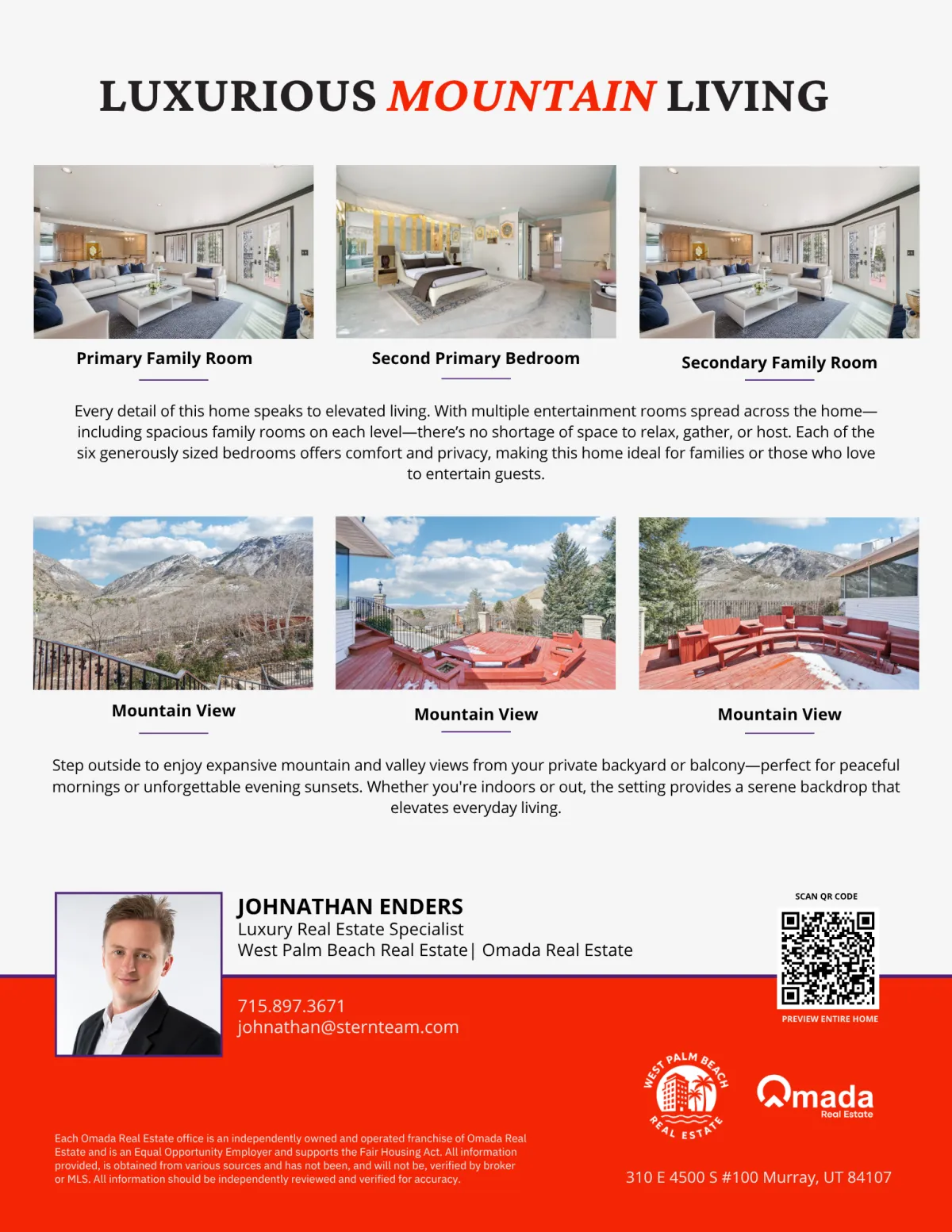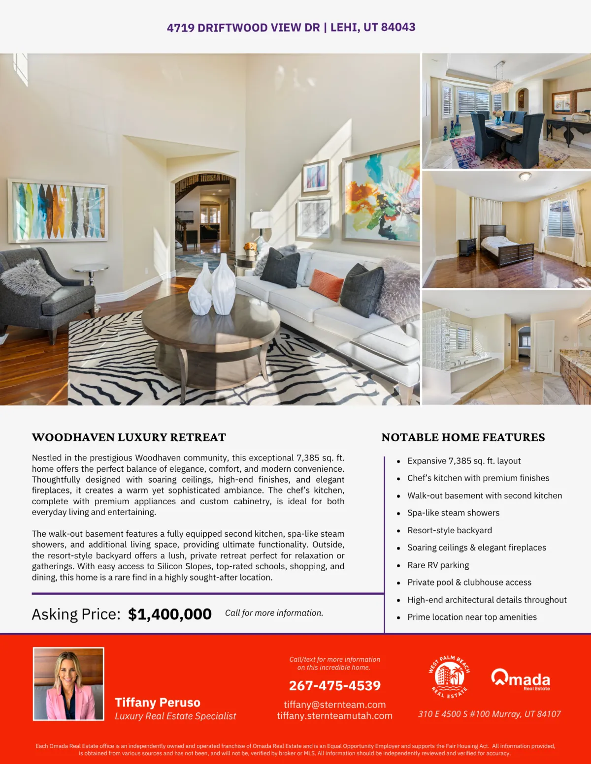Double-Sided Design – Showcase photos, features, and neighborhood highlights.